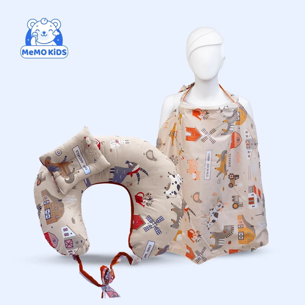 طقم رضاعة: مخدة + ساتر تصميم مزرعة لون بيج