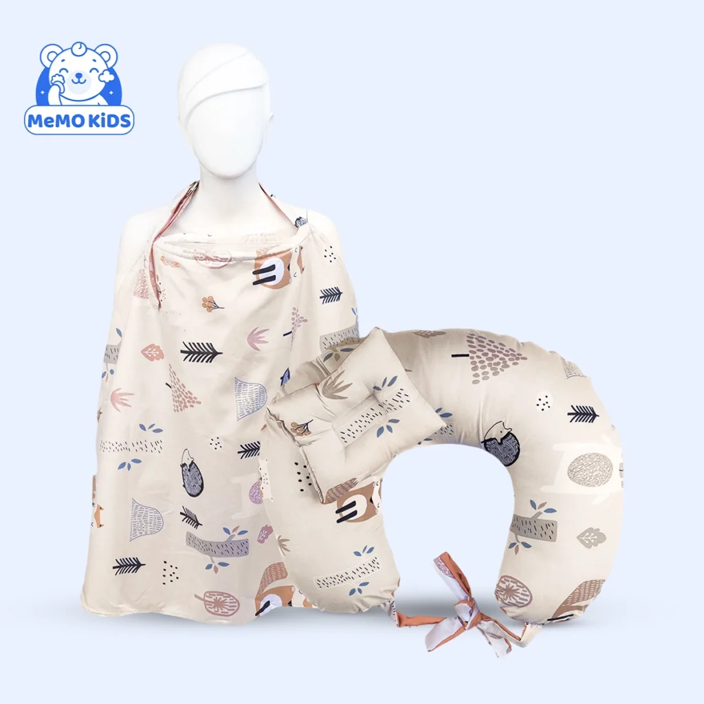 طقم رضاعة: مخدة + ساتر تصميم قنفد لون بيج