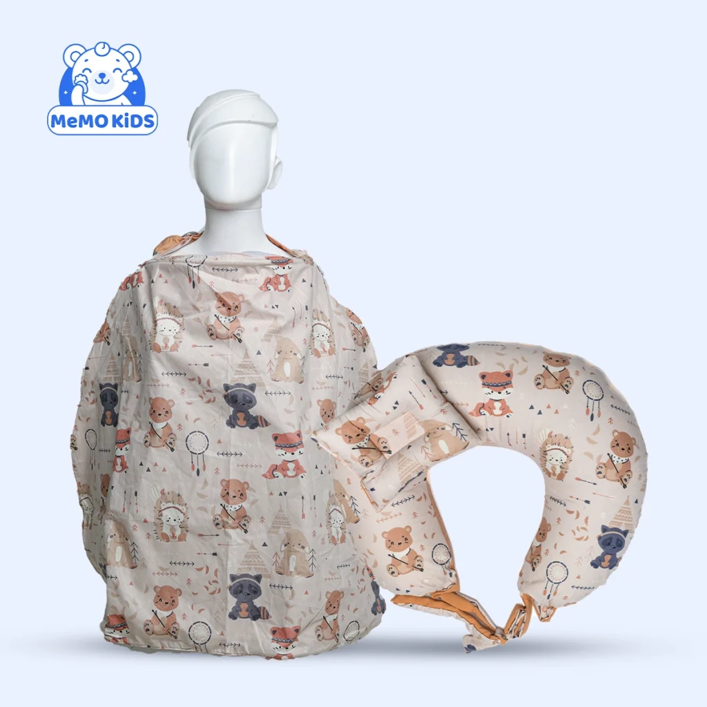 مخدة وساتر رضاعة بتصميم دبدوب لون بيج