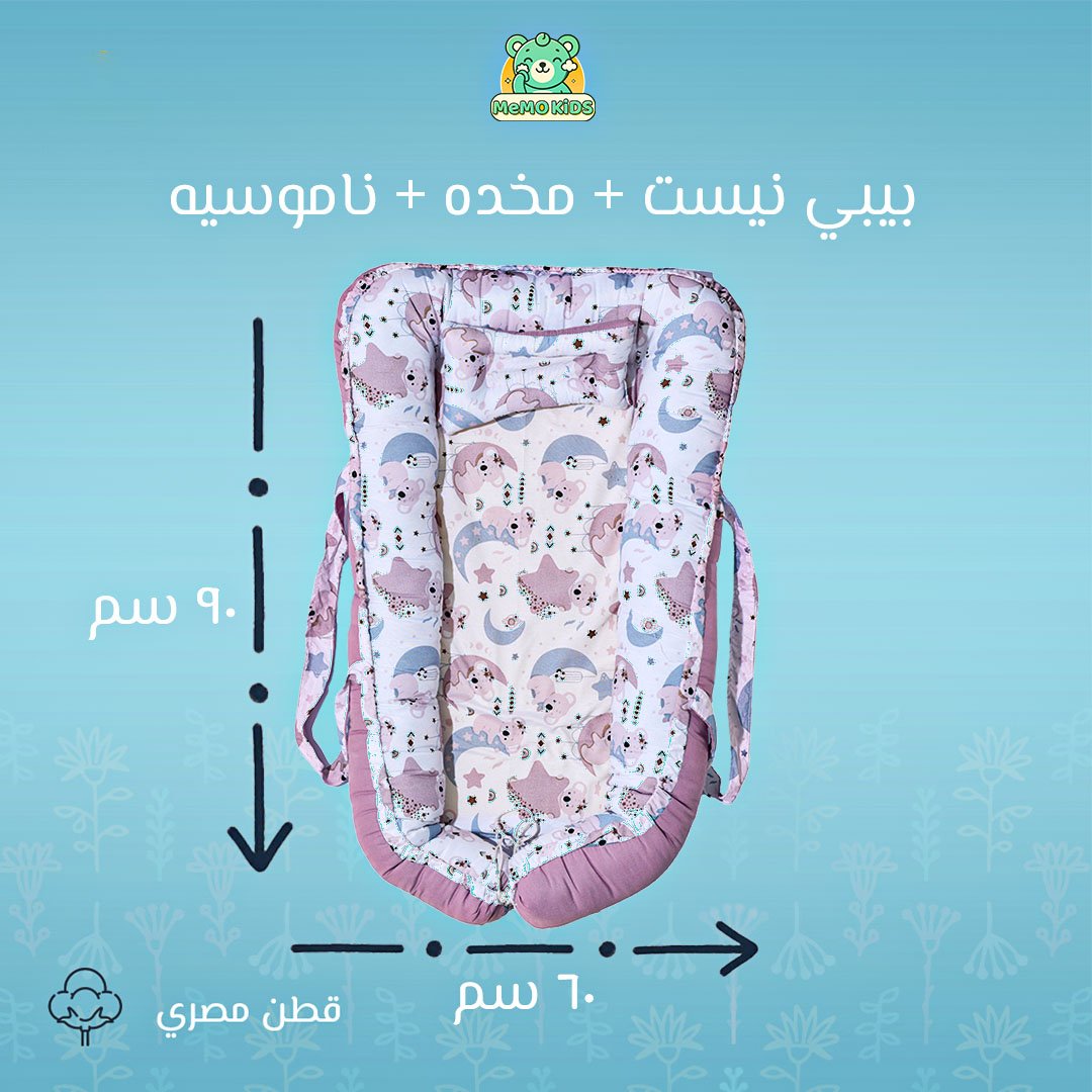 بيبي نست سرير رضع وجهين برسمه دبدوب بينك