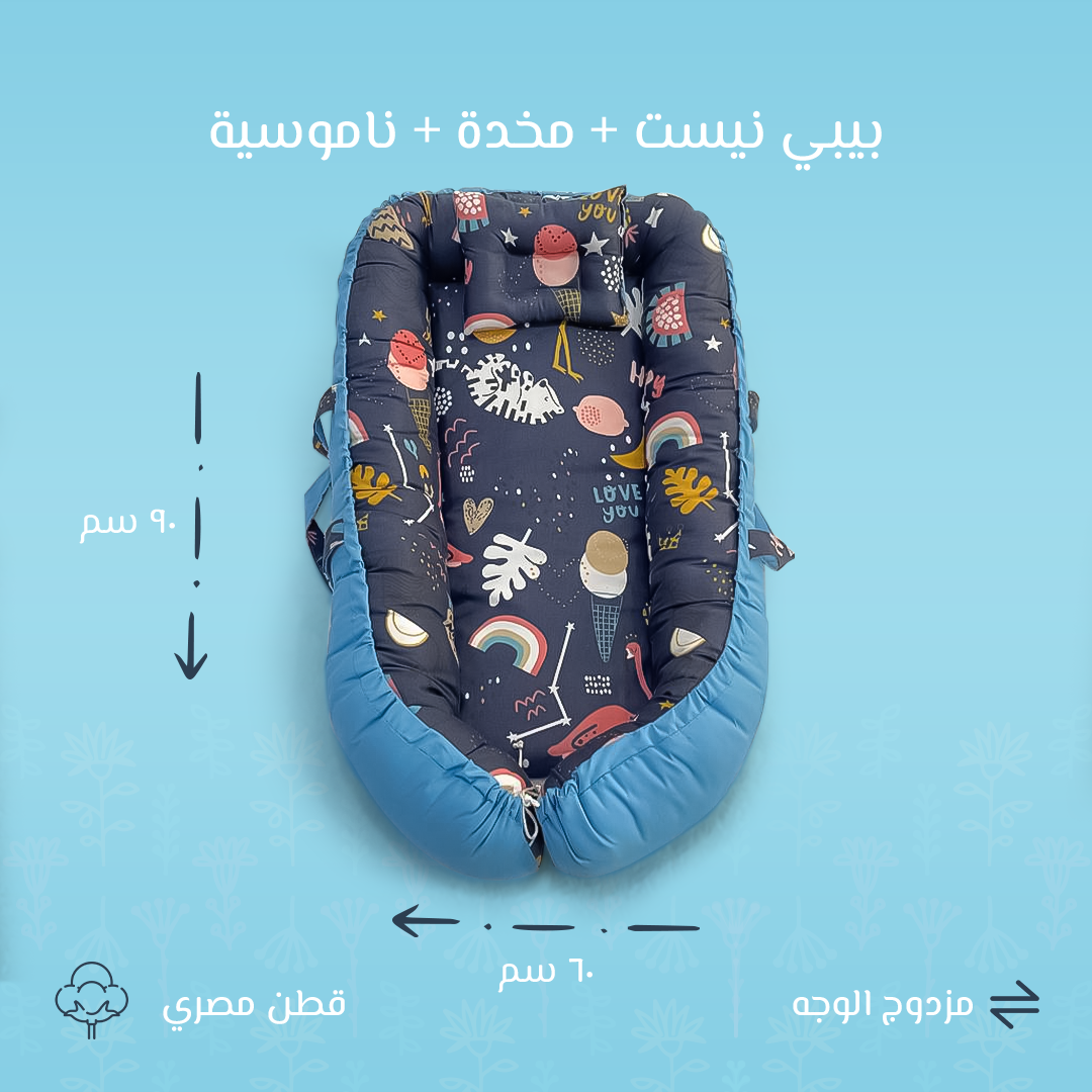 اختاري الأفضل لطفلكِ مع بيبي نيست فلامينجو كحلي من ميمو كيدز، المصنوع من القطن المصري الفاخر لضمان راحة فائقة لبشرة طفلكِ الحساسة. صُمّم بتقنية مبتكرة توفر لطفلكِ إحساس الدفء والأمان وكأنه في حضنكِ.