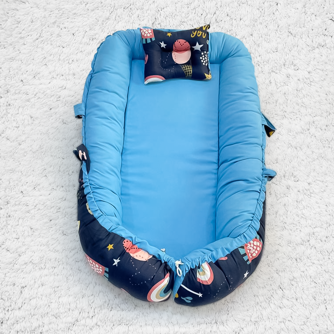 بيبي نيست سرير رضع وجهين بلون كحلي برسمة فلامينجو