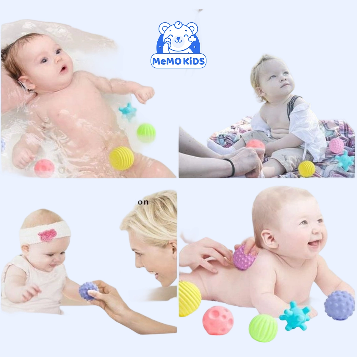 يحتوي الكور على ملمس متنوع يساعد على تهدئة لثة البيبي أثناء مرحلة التسنين، ويحفز حواس اللمس والحركة لتطوير مهارات اليد الدقيقة. كل قطعة مصممة لتكون آمنة على فم ويد البيبي، مما يجعل عملية اللعب والعض آمنة ومريحة.