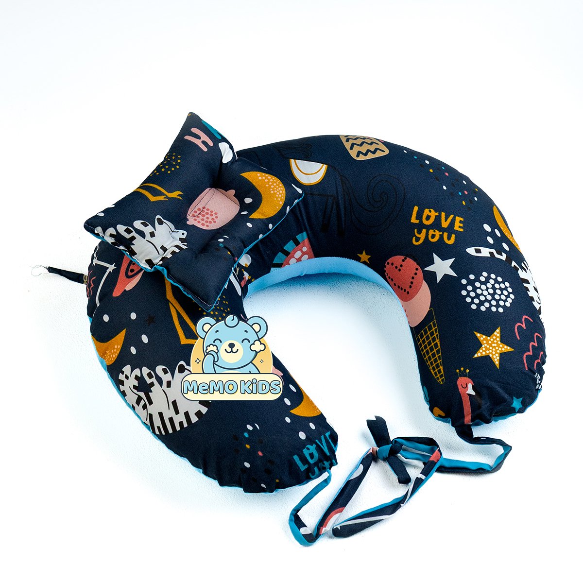 اجعلي الرضاعة أكثر راحة وسهولة مع مخدة الرضاعة برسمة الفلامينجو الكحلي من ميمو كيدز! تصميم أنيق وجذاب، مصنوع من قطن العامرية الفاخر بحشو فيبر هولو عالي الكثافة لدعم مريح أثناء الرضاعة. تحتوي على برباط لثبات أفضل وسوستة لسهولة تنظيف الغطاء. 🎁 كما تأتي بمخدة صغيرة هدية لدعم رأس الطفل، بوجهين: وجه سادة ووجه برسمة الفلامينجو الكحلي، لمزيد من الراحة والأمان.