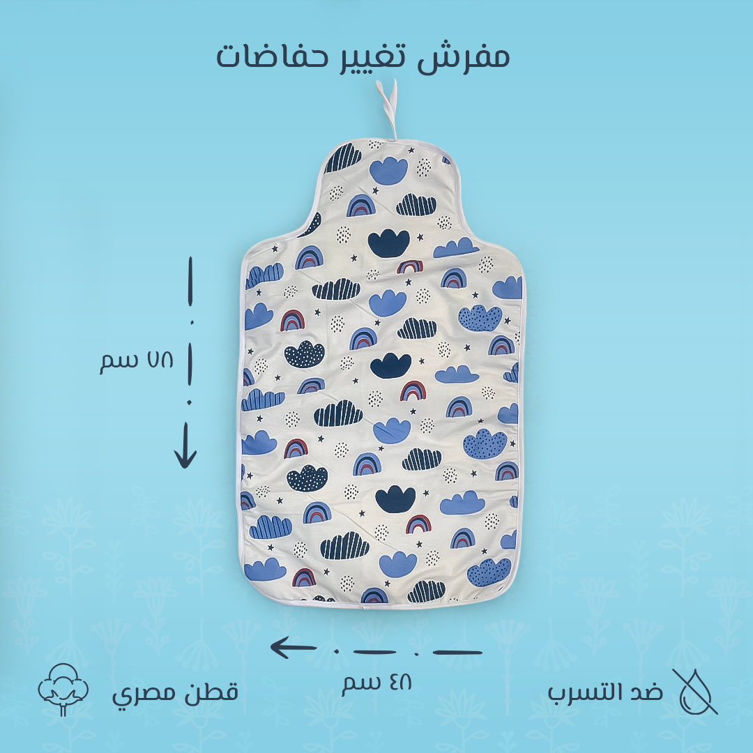✔ مفرش تغير حفاضات عملي برسمة سحابية باللون الأبيض، تصميم أنيق وعصري يناسب جميع الأمهات.