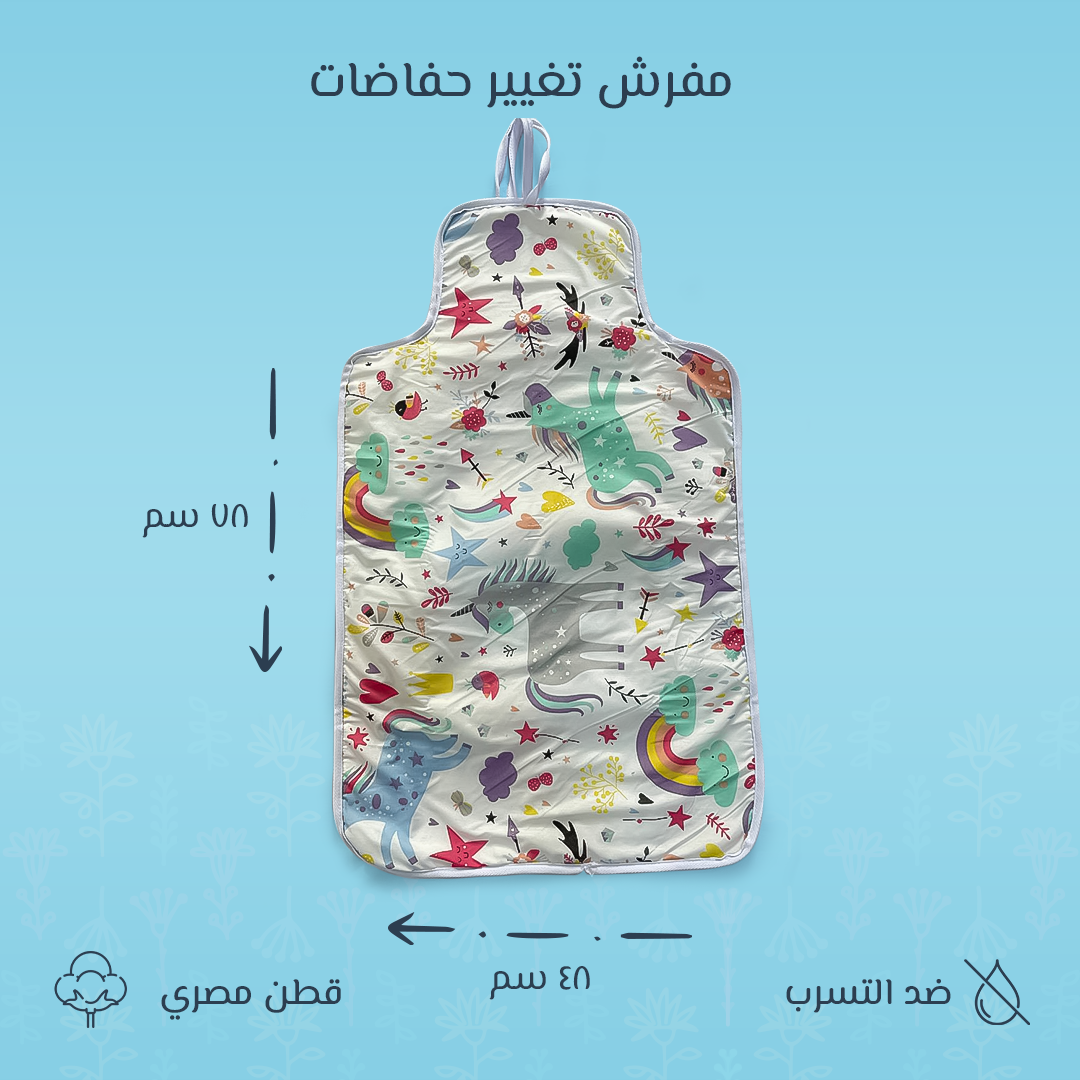 خامات آمنة وناعمة: مصمم من مواد صديقة لبشرة الأطفال الحساسة، مما يوفر راحة إضافية للطفل أثناء التغيير.