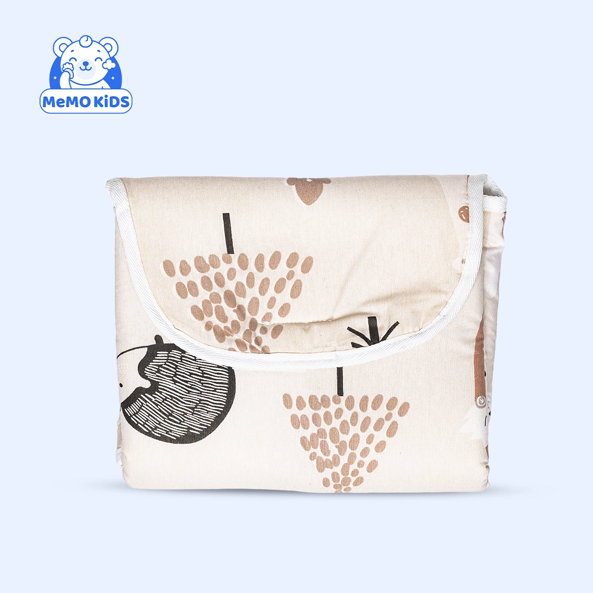 اللون البيج يمنح المفرش مظهراً هادئاً وأنيقاً، كما أنه سهل التنظيف ومتين للاستخدام اليومي، مما يجعله أداة مثالية لكل أم سواء في المنزل أو أثناء السفر.
