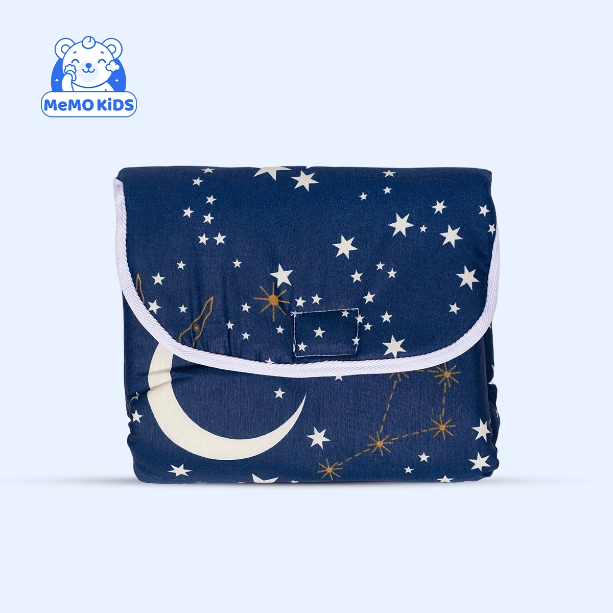 مفرش تغيير هلال لون كحلي تم تصميمه ليمنح الأم مساحة مريحة وآمنة للعناية بالبيبي خلال اللحظات اليومية مثل تغيير الملابس أو تنظيف البيبي. يوفر المفرش سطحاً ناعماً يساعد على إبقاء البيبي مرتاحاً أثناء الاستخدام.