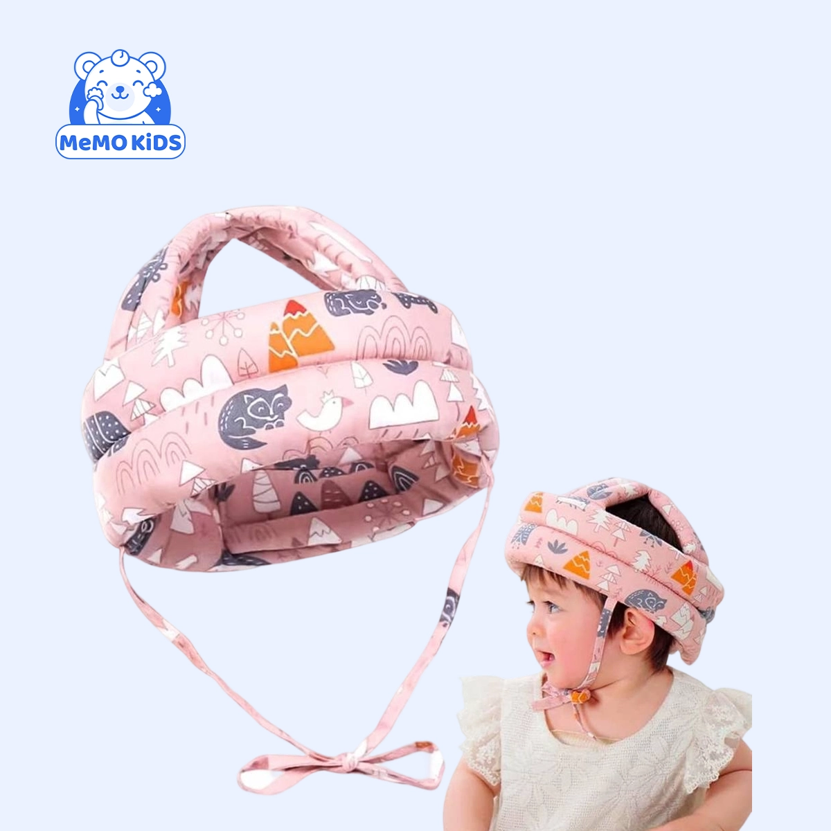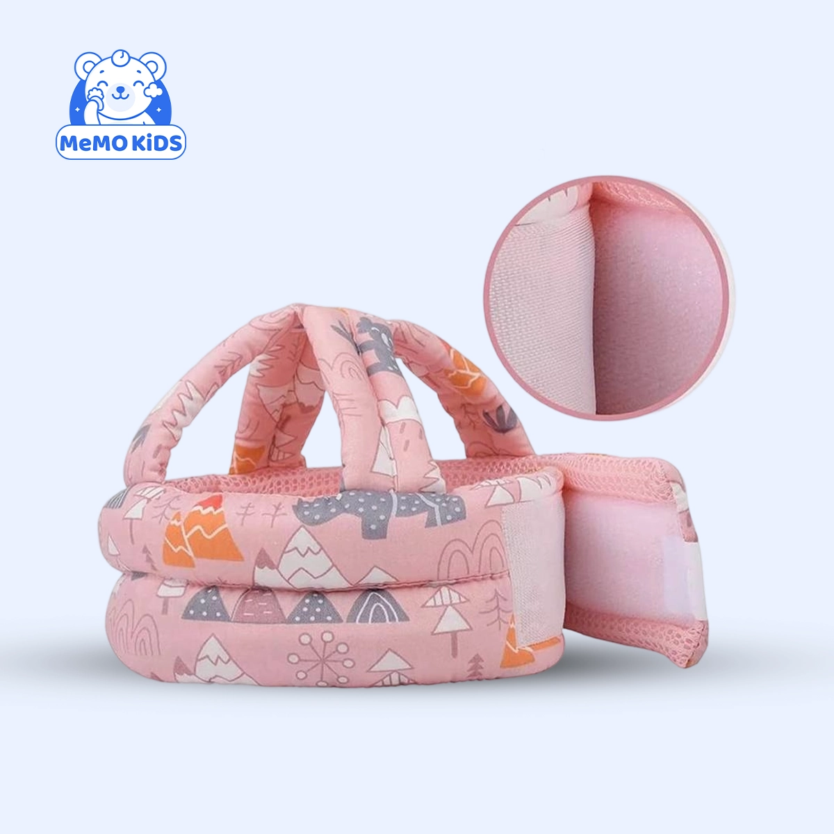 حامي رأس للأطفال مصمم لحماية رأس الطفل أثناء اللعب، الزحف، أو الاستلقاء على الأرض، مع تقليل خطر الإصابات الناتجة عن السقوط أو الصدمات الخفيفة.