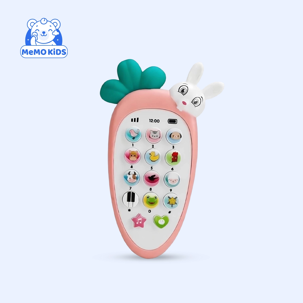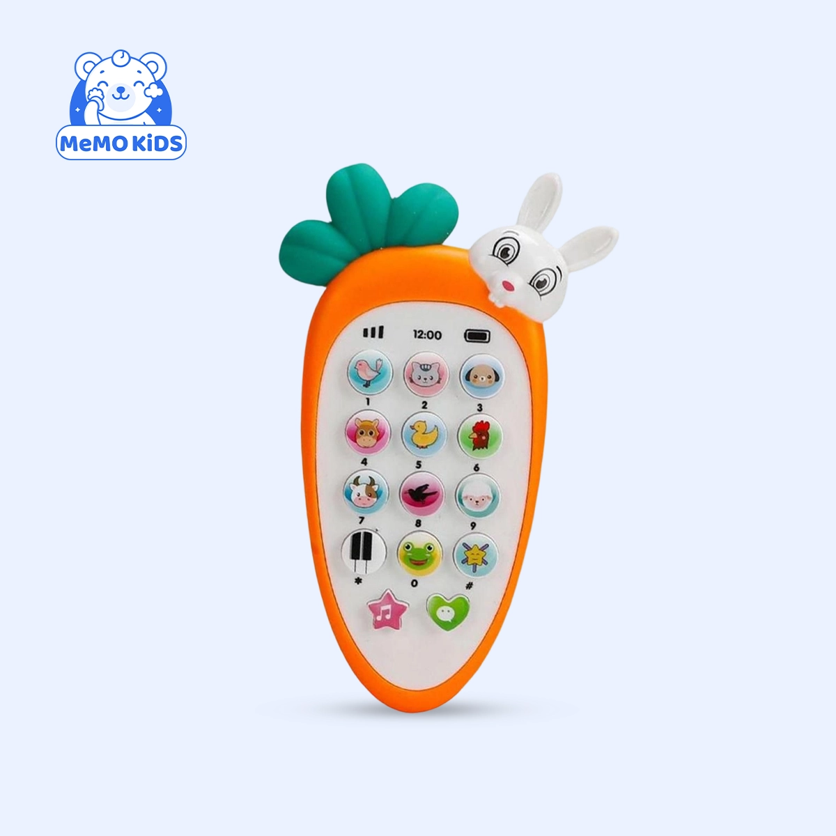 تليفون جزرة للبيبي بتصميم مرح وجذاب على شكل جزرة، مصمم ليكون لعبة تفاعلية تساعد على تنمية حواس البيبي بطريقة ممتعة وآمنة.