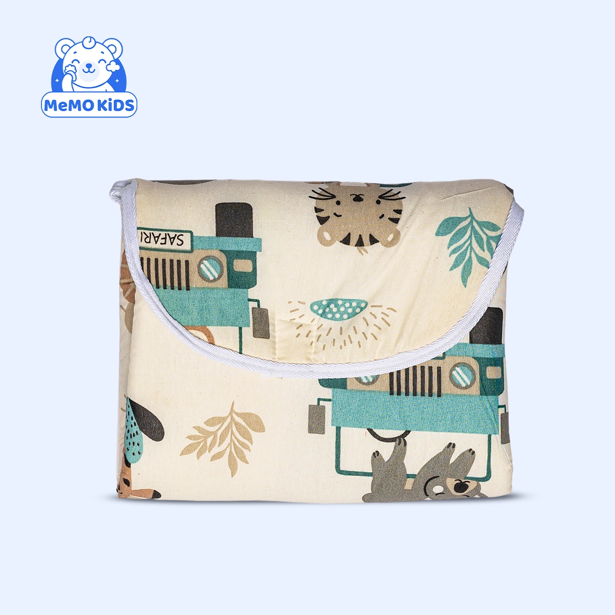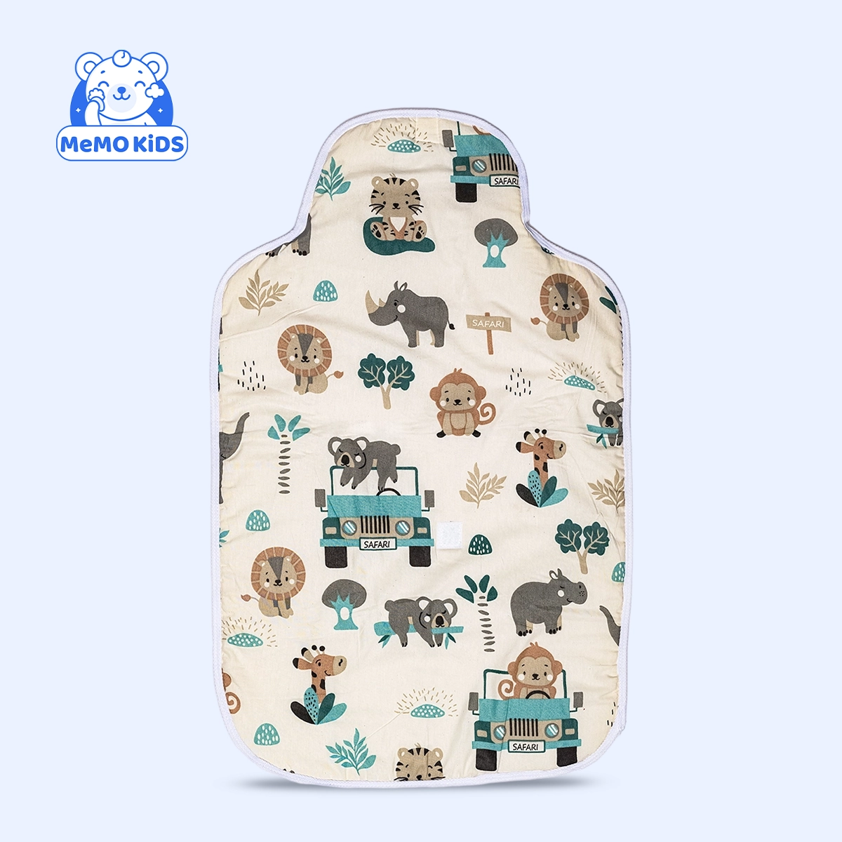 مفرش تغيير تصميم حيوانات لون بيج مصمم ليمنح الأم تجربة مريحة وسلسة أثناء تبديل ملابس الطفل. سطح المفرش ناعم وآمن، ويضمن ثبات الطفل أثناء الاستخدام، بينما تضيف رسومات الحيوانات لمسة مرحة وأنيقة لغرفة الطفل.