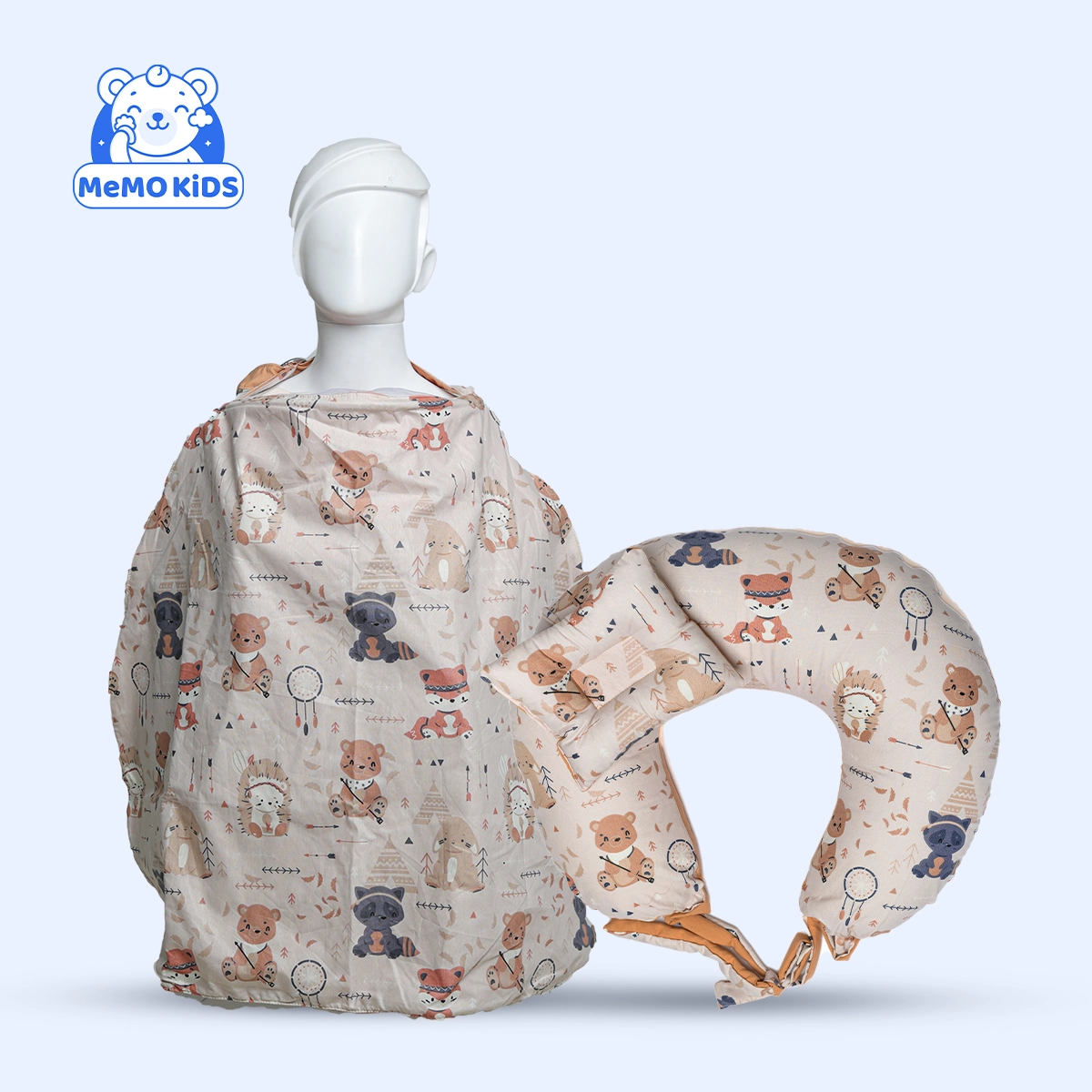 مخدة وساتر رضاعة بتصميم دبوب ولون بيج، صمما لتوفير أقصى درجات الراحة والدعم للأم أثناء الرضاعة، مع خلق بيئة آمنة ومريحة للبيبي.